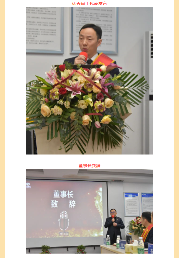 頒獎(jiǎng)典禮結(jié)束后,由公司總裁黃立志先生致辭,黃總對(duì)全體員工表達(dá)了由衷感謝,感謝各位員工在過(guò)去一年的辛勤付出,并對(duì)優(yōu)秀員工進(jìn)行了表?yè)P(yáng),希望全體員工向優(yōu)秀員工學(xué)習(xí),最后,黃總向大家致以最誠(chéng)摯的祝福,宣布晚宴正式開(kāi)始!