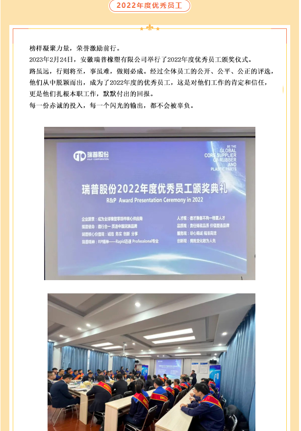 今日適逢立春,立春,為二十四節(jié)氣之首。立,是“開(kāi)始”之意;春,代表著溫暖、生長(zhǎng)。標(biāo)志著萬(wàn)物閉藏的冬季已過(guò)去,開(kāi)始進(jìn)入風(fēng)和日暖、萬(wàn)物生長(zhǎng)的春季!安徽瑞普橡塑有限公司于立春即將到來(lái)之際,舉辦了瑞普2023年度管理評(píng)審會(huì)及2024年瑞普年會(huì)。
