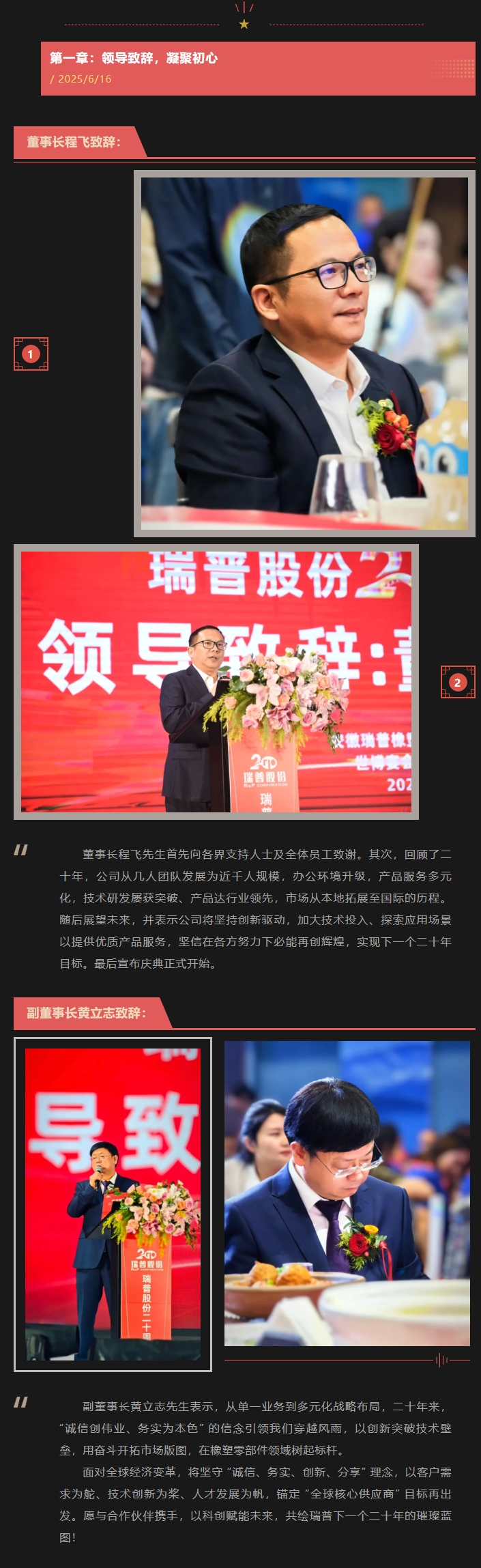 二十載櫛風(fēng)沐雨,二十載砥礪前行。值此安徽瑞普橡塑科技股份有限公司成立二十周年之際,我們滿(mǎn)懷感恩與喜悅,誠(chéng)邀您撥冗出席二十周年慶典活動(dòng),共同見(jiàn)證這一榮耀時(shí)刻,共敘情誼,共謀未來(lái)!